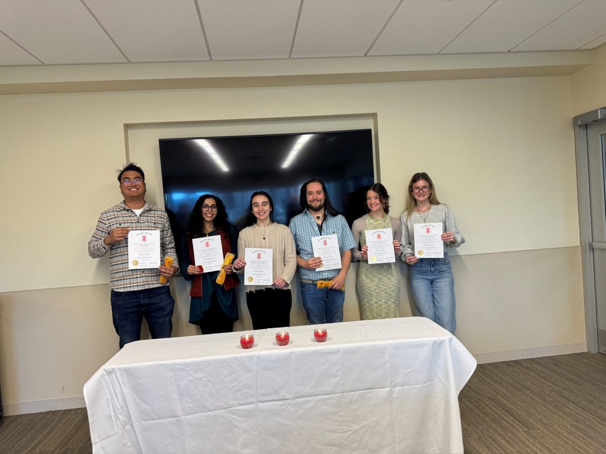 Members participate in the Mu Sigma department induction ceremony, and receive a certificate, pin, and graduation honor cord to signify their lifetime membership in the National Communication Association honor society.